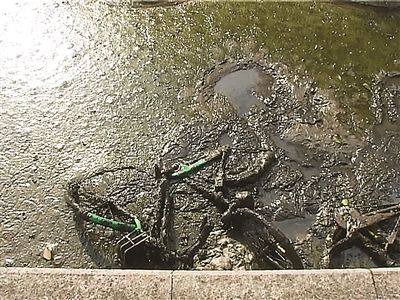 如今城市共享单车种类和数量越来越多,给市民出行带来许多方便,但是骑行者素质以及投放单车公司的管理有待于提高和加强。昨天上午,有市民发现鼓楼区狮子山护城河内清淤过程中淤泥里就显露出三辆共享单车,民警费了很大劲才捞出一辆。