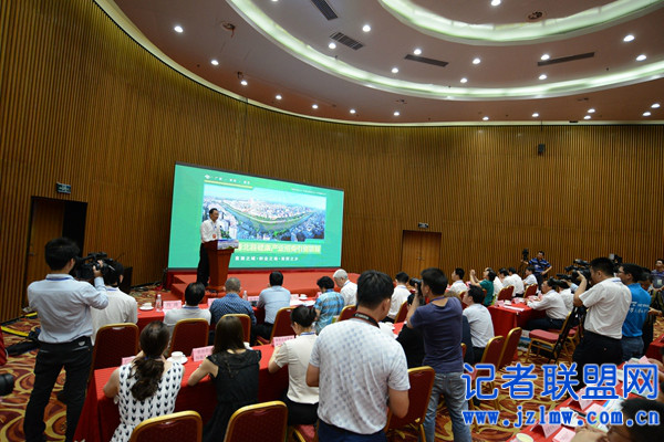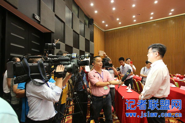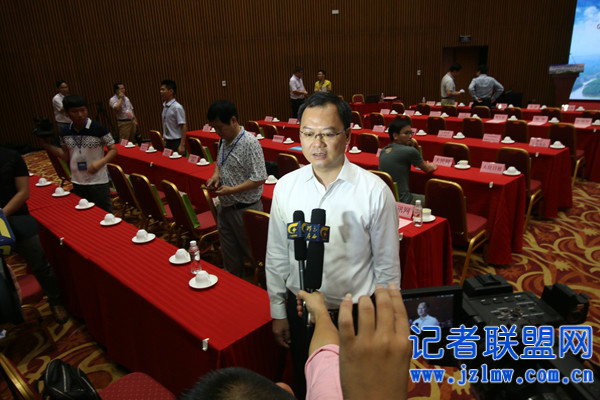 县长书记韦业葵介绍记者采访.