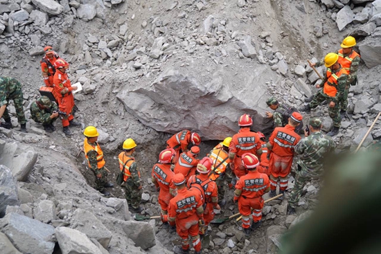作为24日较早一批进入现场的搜救人员,武警水电三总队第九支队的刘亚爽在这里看不到一丝往日的痕迹。大大小小的碎石掩盖了这里曾有的人家、公路和河流。
