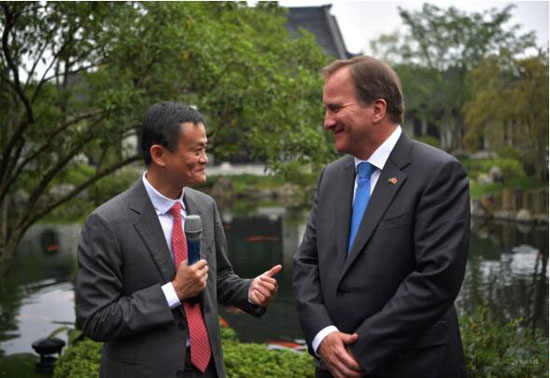 6月28日,瑞典首相斯特凡·勒文在访华期间造访阿里巴巴杭州总部。在与马云对话时,勒文大赞杭州跟瑞典一样,都富有创新精神,希望阿里巴巴成为两者之间的桥梁。勒文称,电商是瑞典的巨大机会,“不少瑞典企业已经通过天猫进入中国,在中国消费者中非常受欢迎,我们希望有更多企业跟阿里巴巴发生联系,期待在瑞典接待你们继续讨论。”