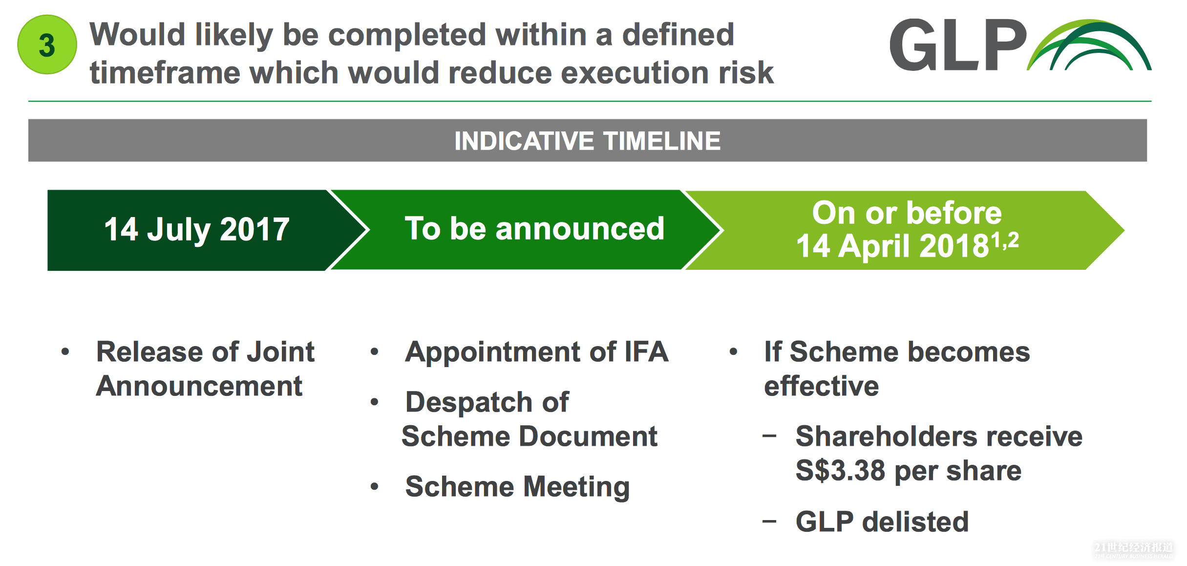 7月14日中午,亚洲物流地产巨头新加坡上市公司普洛斯(Global Logistic Properties)宣布,接受由厚朴、高瓴资本、万科等组成的中国财团进行每股3.38新加坡元的收购交易,估值约为160亿新元(约116亿美元),收购价每股按普洛斯将从新加坡交易所退市,计划在2018年4月14日或之前完成退市。普洛斯最大股东新加坡政府投资公司(GIC)称,持股比36.84%,支持普洛斯的私有化交易。