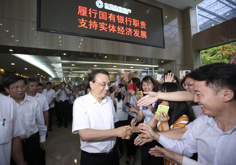 图为李克强总理2016年6月20日下午到中国建设银行考察。