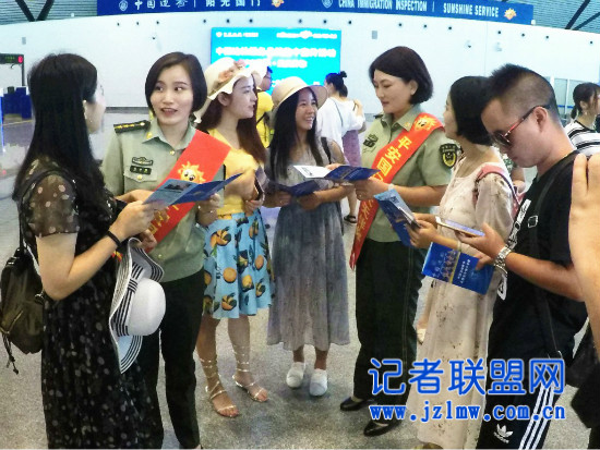 活动现场设立有咨询台及宣传展板,义务为旅客和广大群众提供出入境政策法规咨询。