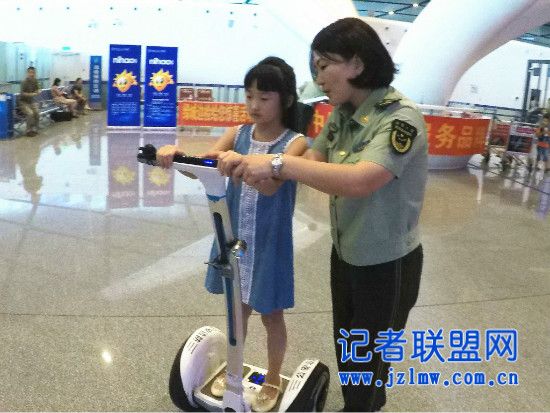活动中,官兵还组织了12位南宁市民来到吴圩机场T2航站楼,通过“百元大钞来鉴别”、“东盟十国猜猜看”、“警用器械我体验”“跟着‘天天’走边检”等互动游戏,让市民们零距离走进边检、了解边检、体验边检。