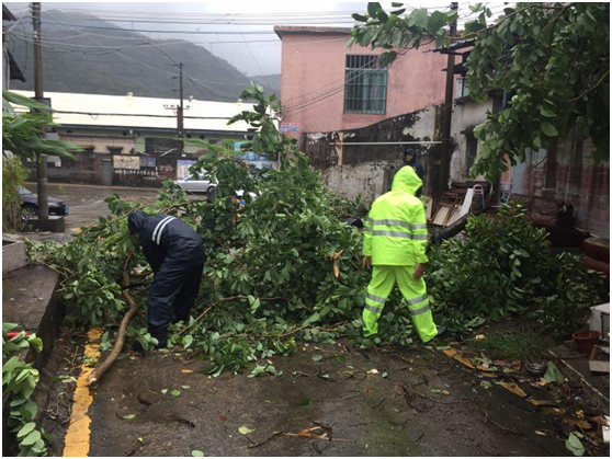 23日14:35广东电网珠海香洲供电局南屏供电所党支部发挥冲锋带头作用,力所能及做好后勤安全保障工作,第一时间清理供电所出口树障,确保抢修复电快速通道畅通无阻。广东电网 麦活文 摄