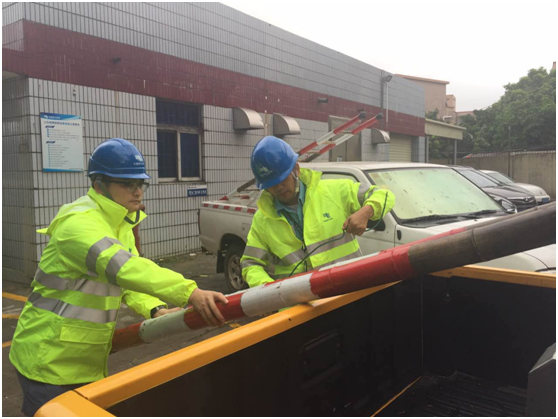 23日14:35广东电网珠海香洲供电局唐家湾供电所工作人员在风力有所减弱后,兵分六路,逐一赶赴故障现场。广东电网 麦活文 摄