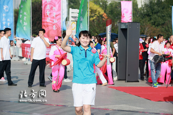 天津北方网讯:8月24日上午8:30,中华人民共和国第十三届运动会火炬传递仪式第十五站在天津市河东区进行。随着河东站第一棒火炬手周杰从天津站前广场出发,第十三届全运会火炬传递仪式河东站正式开始。