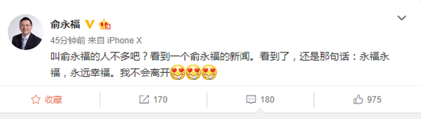 但人们还没来及猜测感慨,事件的主角便公开辟谣:我不会离开。