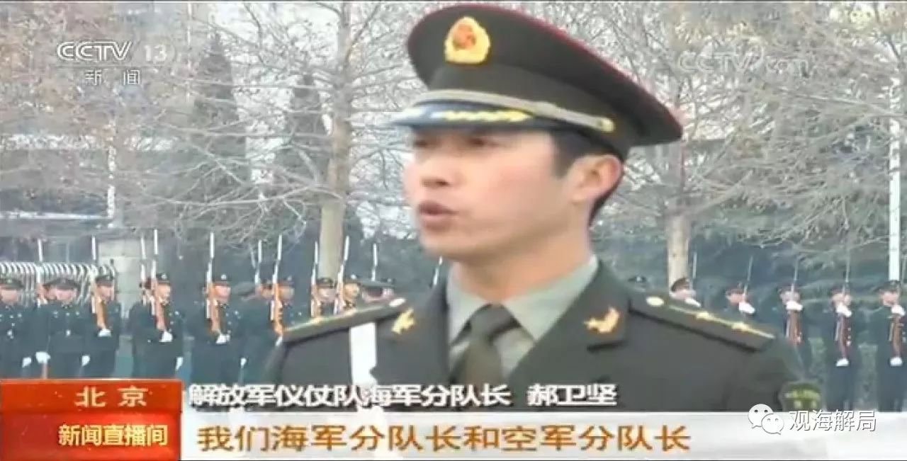 换句话说,126人的队伍是这样组成的:国旗组的3名官兵走在队伍最前面,3名陆海空军分队长、90名陆海空军队员紧随其后,此外在金水桥南侧,还有30名礼兵分列两侧,行注目礼。