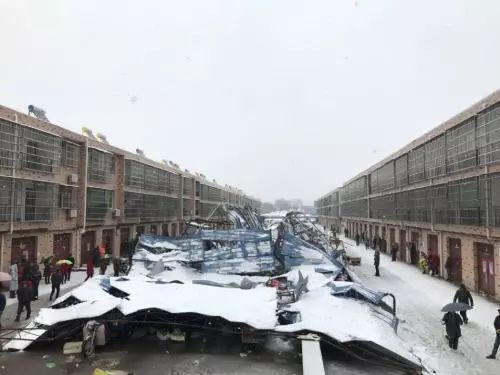 1月4日上午,安徽合肥6个公交站台被积雪压塌,导致多人受伤,其中一名伤者已经死亡。而在湖北安陆市,大雪则压垮了一个菜场,约700平方米的菜市场基本被压塌,现场一片狼藉,正在买菜卖菜的数十名民众被压在柜台之间的缝隙里,好在当地消防、公安民警反应迅速,接警后,赶到现场将13名被困人员救出。