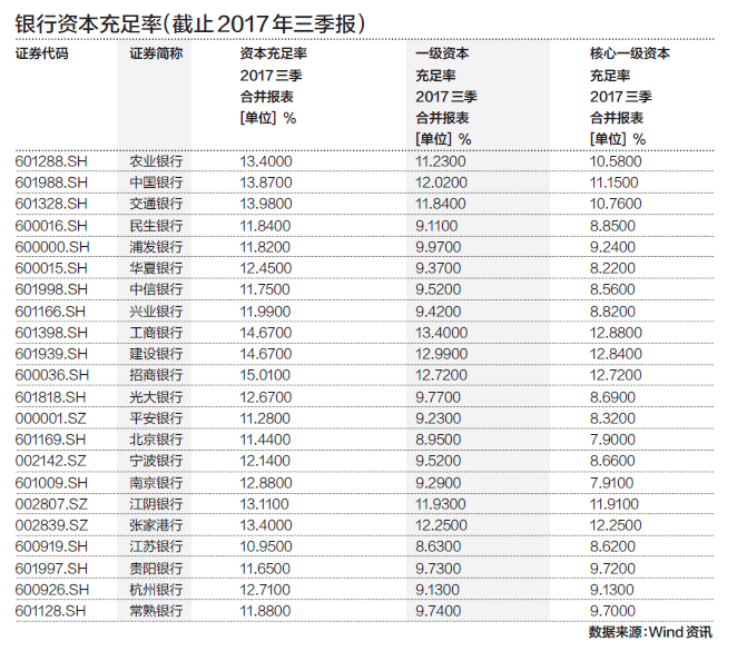 2017年央行将表外理财业务纳入广义信贷统计口径,提高了MPA中宏观审慎资本充足率的达标门槛。而根据银监会资本新规过渡期安排,到2018年底,系统性重要银行资本充足率、一级资本充足率和核心一级资本充足率分别不得低于11.5%、9.5%和8.5%。