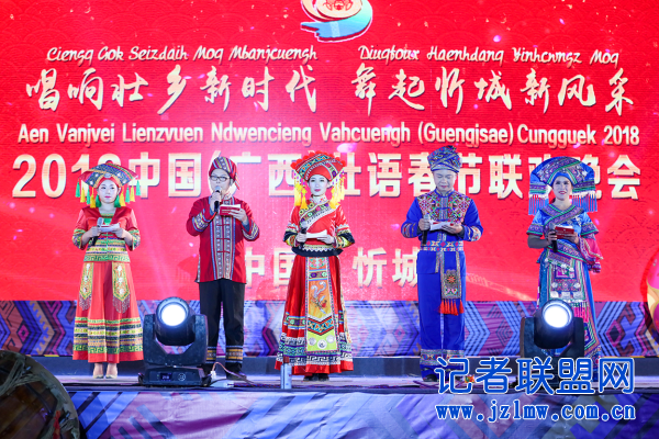 中国记者联盟网 广西讯(首席记者 田建海 特约记者 沈春莲) 2月6日晚,万众瞩目的2018中国(广西)壮语春节联欢晚会在来宾市忻城县红川广场隆重举行,现场人头攒动,座无虚席,晚会历时三个小时,涵盖舞蹈、声乐、器乐、杂技、小品、快板、魔术、服装走秀等多种表演艺术形式,节目内容丰富,高潮迭起,温馨年味浓,创新亮点多,精彩的表演不时博得台下观众热烈的掌声,现场气氛热烈欢快。