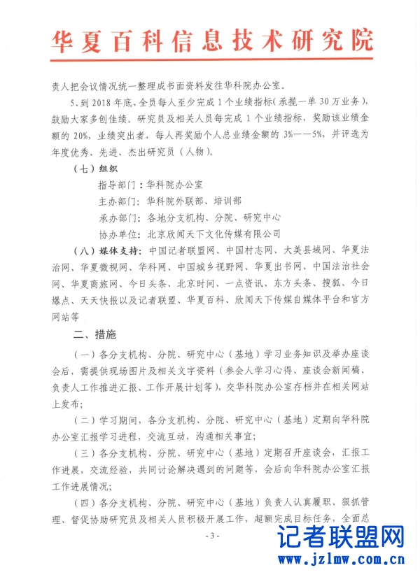 《通知》指出,为了增强华科院凝聚力、向心力,提高研究员及相关人员业务水平,开拓进取,携手并肩,同心协力,实现“跨界融合,汇集众智,共商共建,共享共赢,构建具有中国特色的多元化、专业化、市场化、全球化的华夏百科百业研发体系,全力铸就华夏融媒航母”的理想目标,华科院经院委会研究通过,正式决定2018“大学习、多举措、求实效、创佳绩”工作部署和安排。