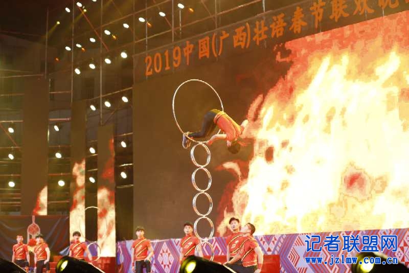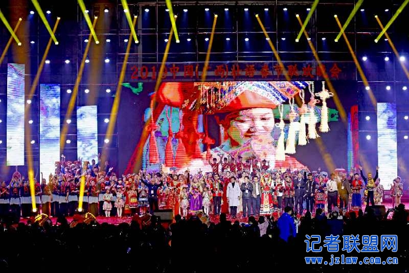 为庆祝新中国成立70周年,1月23日晚,万众瞩目的2019中国(广西)壮语春节联欢晚会在广西合山市体育馆隆重举行。晚会历时两个多小时,涵盖舞蹈、声乐、杂技、小品、服装走秀等多种表演艺术形式,节目内容丰富,高潮迭起,温馨年味浓,创新亮点多,精彩的表演不时博得台下观众热烈的掌声,现场气氛热烈欢快。
