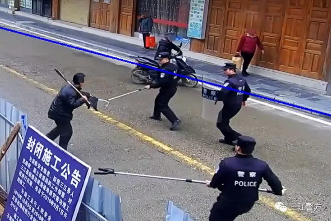 新京报快讯 据柳州公安微博,2月27日,柳州三江公安指挥中心接到群众报警,称一名男子手持1米长刀在广场至月亮街路段徘徊,十分危险。指挥中心立即指令巡逻应急处突大队、河东派出所出警处置。但在广场巡逻的处突队员并未发现类似情况。随后,指挥中心将情况向交、巡警联勤组通报,进一步扩大巡查范围。很快,联勤组在古宜大桥河东桥头发现可疑男子,该男子手持一把长柄尖刀,上窜下跳,满口胡言,精神恍惚,自称“九五之尊”。