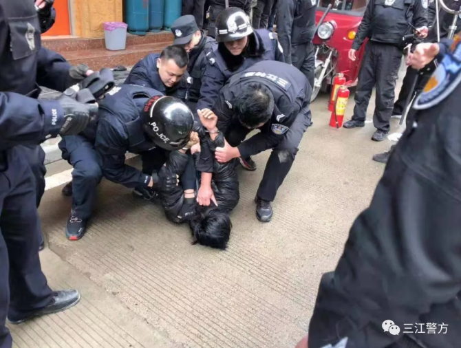 此时,处突队员吴胜杰趁该男子不注意,闪身到其身边,一把夺过长刀,其余警力一拥而上,最终将该男子控制。过程中,处突队员吴胜杰不慎被刺伤。目前,事件正在进一步调查处置中。