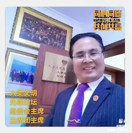 中华民族伟大复兴,引领世界和平大同;人类文明先锋论坛,促进人类文明发展;谋求世界安全,世界和平繁荣昌盛;天下一家和美荣生,人类文明先锋论坛;伟大精神万代永传,倾情支持赞助加盟;大爱奉献荣耀终生,大义英名万代传颂!