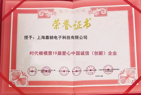 上海嘉辀电子有限公司获时代楷模第19届爱心中国诚信(创新)企业
