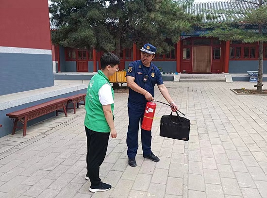 全球融媒体联席会采编中心 北京讯(首席记者田建海 记者袁芳 马新存)2023年6月19日上午,北京市房山区消防救援支队卢同玺警官,先后深入韩村河镇龙门生态园天开寺景区,重点对寺院消防安全责任制是否落实,消防器材、设施配置是否配备并完好有效,消防疏散通道、安全出口是否畅通等内容进行了现场检查。卢同玺警官在园区义务消防队长臧桂园的陪同下,先后来到天开寺、华宇医院等场所实地察看了各场所的消防安全责任制和各项防火安全制度是否落实到位,消防设施是否运行正常,安全出口是否畅通无碍,用火、用电设施是否龙门生态园消防安全形势稳定。消防救援支队卢同玺警官表示:“消防安全无小事,有了安全做保障,才有经济大发展。我们将持续加大监督检查和宣传力度,进一步提高群众的消防安全意识和火场逃生自救能力,为全园区的人民生命财产安全营造良好的环境。”