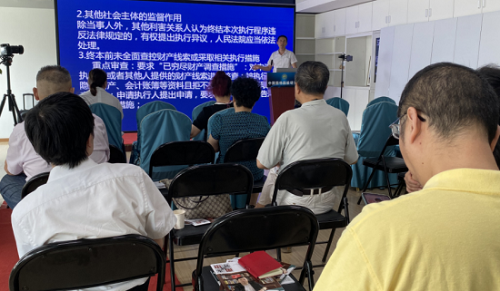 中国智慧工程研究会经济法治委员会法律专家、北京盈科律师事务所资深律师武景生主讲了《终本执行案件的应对与预防》,对全国执行工作形势进行数据分析,指出执行过程中普遍存在的难点月盲点;终结本次执行的必要性与终结本次执行程序的条件;终本执行案件的应对路径与方法,强调了具有实操意义的几种常用方法:申请执行人提出执行行为异议;申请执行人主动寻找新的财产线索后恢复执行;借用外力寻找财产线索破局执行难——执行悬赏;通过诉讼扩大债务主体后恢复执行。最后,武景生律师还提醒大家注意“终本执行案件的预防”,尽量穷尽一切执行手段查封、冻结和拍卖被执行人财产,避免债权人的经济损失。