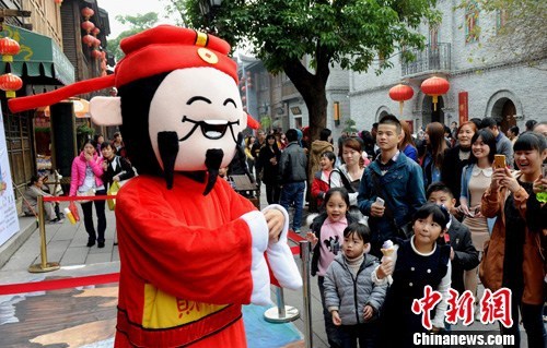 资料图:大雪节气"财神"福州街头送祝福。中新社发 刘可耕 摄