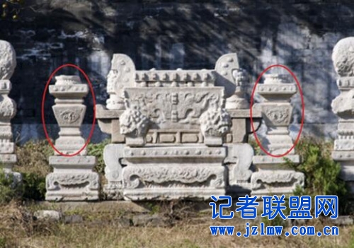 画圈处为北京明十三陵思陵石五供的一对烛台。