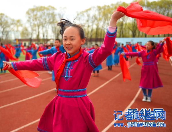义勒力特中心小学学生在学习蒙古族舞蹈