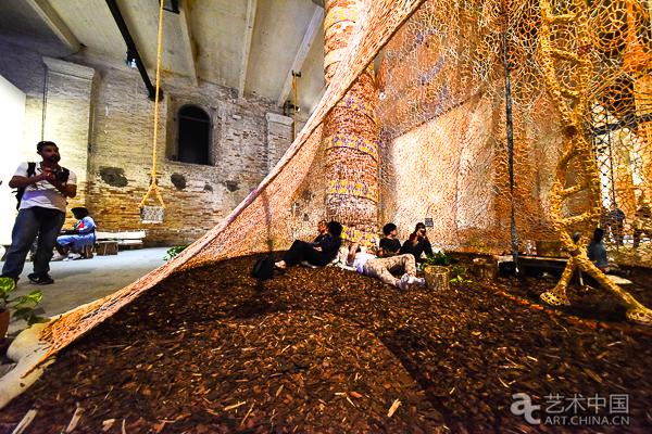 中国馆策展人邱志杰以“不息”作为主题,灵感来源于《易经》中的“天行健,君子以自强不息”。通过中国古代神话、民间传统技艺及当代艺术的结合,展现了中国艺术如何在当代语境中持续发展的一种新的方式。