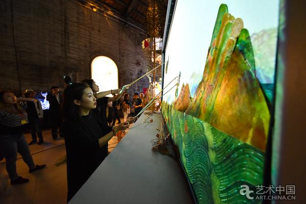 首先,策展人不是单纯地将中国民间艺术千里迢迢托运威尼斯,而是邀请传统艺术家和当代艺术家共同创作作品,用新的媒介、新的科技、新的手法来重现民间艺术;其次,本次展览所选取的民间艺术题材也颇为新颖,多谈论中国神话故事,如苏绣艺术家姚慧芬和当代艺术家邬建安,以南宋李嵩的《骷髅幻戏图》为背景而再创造的富有戏剧冲突性的一系列作品;最后,展览呈现的不仅是视觉上艺术的“新”与“旧”的承接,也让观众见证了这一艺术精神承接的过程:在开幕前期,中国馆每个时段都由来自陕西华县的皮影乐团参与演出,而他们也会将自己的技法传授给威尼斯美院的学生,接着逐渐由年轻的留学生们交接,最后取代老艺术家们来演绎皮影;而在没有表演者在场的时候,幕布背后则有操作皮影的机械手和录像带一起完成表演。