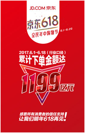 今日,京东发布数据显示,在6月1日-6月18日,京东商城累计下单金额达1199亿元,累计卖出商品超过7亿件,相当于每个中国家庭在618购物节期间都在京东购买了1.6件商品。