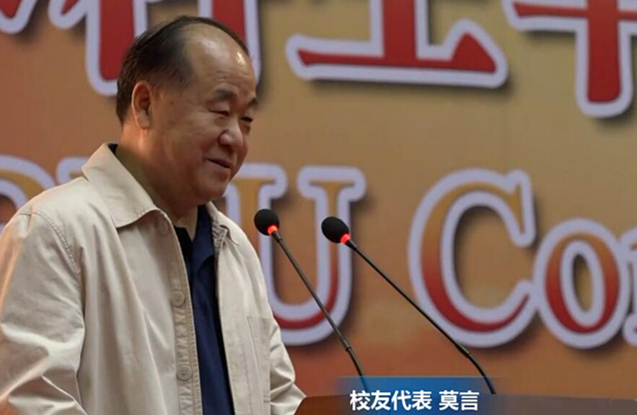 莫言说,“社会是千变万化的,但很多东西是永远不变的。第一,爱国之心是永远不能变的。我们和土地的联系是不可分割的,我们的基因里就有中华文明的深刻影响。第二,敬业之心不能变。敬业之心里也包含着创新,同学们很可能毕业后去一个普通的岗位,这些工作非常平凡,要求我们按部就班。但是,即使在这样循规蹈矩的工作中,我们依然不能忘记母校给我们的创造力。最后,诚信之本不能变,与人友善也不能变。”