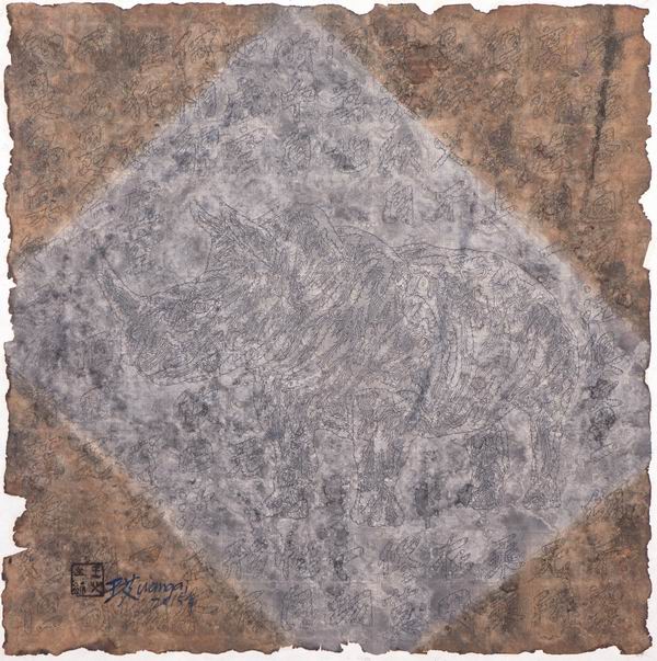 王艾《坛经·犀牛2》纸本综合材料