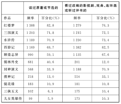 关于大学生接触原著与改编作品的调查结果 图表来源:《当前社会“文学生活”调查研究》