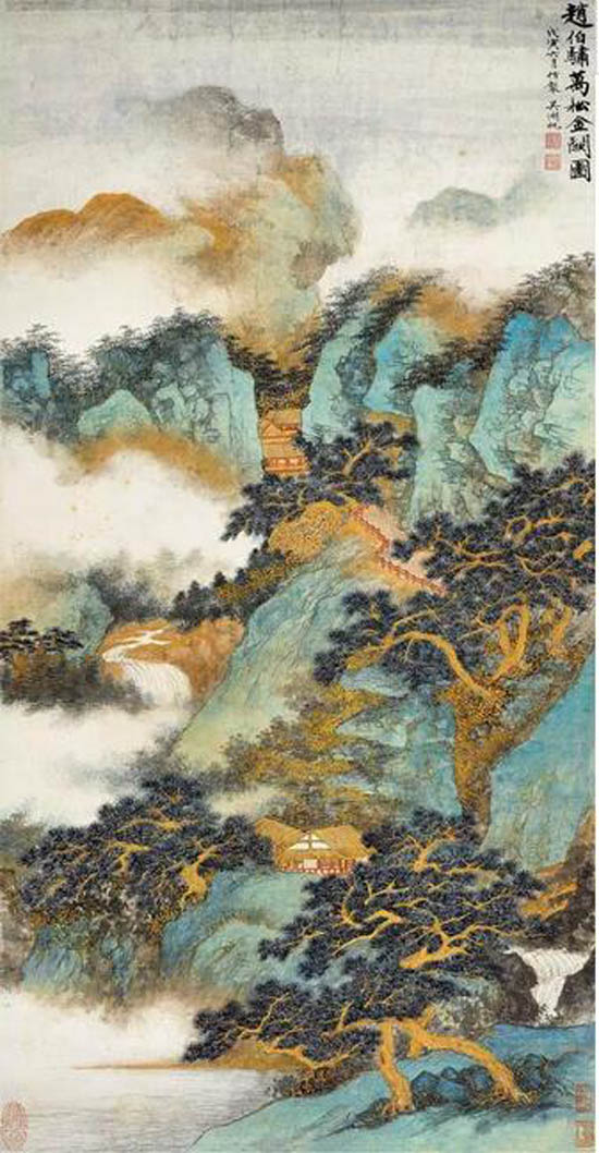《万松金阙图》算得上是吴湖帆青绿山水画中的精品,自1938年问世以来,就被多次被收入于权威出版物中,1941年出版的《梅景书屋师生父子第一届画展全集》、1987年上海人美出版的《吴湖帆画集》中均收录了此画,可见确为吴湖帆之重要作品。