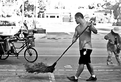 博士暑假帮父母扫马路