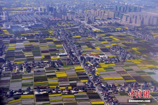 资料图:盛开的油菜花和田间农作物将大地装扮得多姿多彩。中新社记者 毛建军 摄