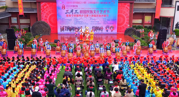 广西是歌的海洋,是天下民歌眷恋的地方。2014年"壮族三月三"的申遗成功,将广西壮族及各民族文化推上了国际舞台。而三月三传统文化走进校园,必将有力促进壮民族文化繁荣与发展。2019年4月1日和4月3日,为庆祝新中国成立70周年,同时,也为了更好地弘扬民歌这朵绚丽多姿的民间文化艺术,挖掘和传承广西民间的艺术精髓,并使其代代薪火相传。以“三月校园嘉年华共圆民族复兴梦”为主题的第三届(2019)中国壮族三月三校园民族文化艺术节,分别在广西民族师范学院、南宁市明秀小学隆重举行。