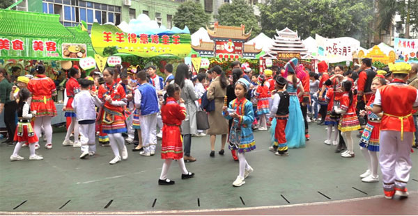 4月3日上午,在南宁市明秀小学的艺术节活动现场。学生们穿着各民族服装,载歌载舞。节目内容丰富多彩,耐人寻味,充分展示壮乡各民族的传统文化特色,他们不仅展示壮乡的民族文化特色,更是56个民族文化艺术的缩影。一首《呗侬多如星》唱出了壮乡呗侬多多多如星,壮乡呗侬伴我行,幸福和谐大家庭的场面。神州大地繁花似锦,八桂壮乡山歌如潮,全体师生在春天里尽情歌唱《我和我的祖国》,共同祝愿祖国七十华诞。