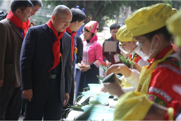 现场的民俗美食一条街,摆满了糍粑、灌血肠、五色饭等壮乡各民族特色的美味佳肴。家长和学生们还在现场展示了民族饮食文化和民族手工艺作品。全方位、多角度展示了壮乡民族艺术、民族体育、民族教育、民族美食。不仅吸引了嘉宾们的眼球,还引来众多民族文化交流学者和游客。学校在阵阵欢呼声中变身艺术殿堂和欢乐的海洋!艺术节现场从点到面,无不凸显出校园民族文化风采和传统民族文化的无穷魅力。
