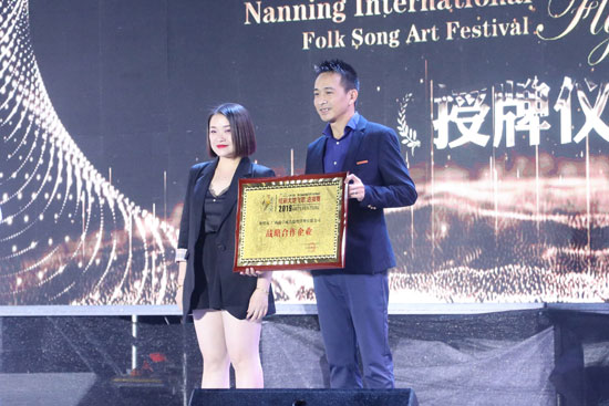 本次晚会由大地飞歌·南宁国际民歌艺术节巡演主持人栗子、嘉豪共同主持。悦星文化副总经理、大地飞歌巡演晚会组委会副主席谭星云先生等领导为本次2018全区总决赛年度单项奖、年度冠亚季军进行颁奖仪式。