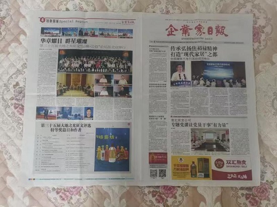 著名品牌战略策划专家、中国政策网总编辑张华夏赠送给著名社会活动家李法明的刊登由他本人于2023年6月20日在北京万寿宾馆出席并讲话国家大型论坛仪式的《企业家日报》样报