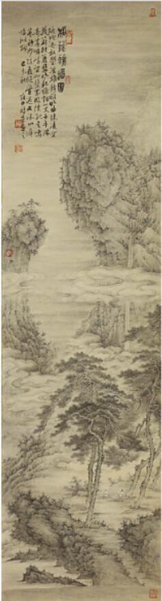 雍力的山水画所描绘的山水风景、伟岸奇峻,重峦叠嶂,烟水苍茫,山峦景物刻划有致,笔墨沉稳,设色淡雅,清新酒脱,有宋画之风,具有大家气象。