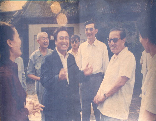 周雁翔在蒲松龄纪念馆时曾接待过文化名人专家学者以及国家领导人,图为周雁翔馆长在和和乔石委员长交谈。