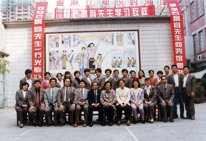 周雁翔广交朋友围绕图书馆发展服务,图为他热情接待爱国人士,为中国图书馆事业的作出卓越贡献的香港汉荣数据董事长石景宜先生并为淄博市图书馆填补了一项空白加强了海峡两岸文化交流。图为淄博市图书馆全体工作人员与石景宜夫妇在淄博市图书馆合影