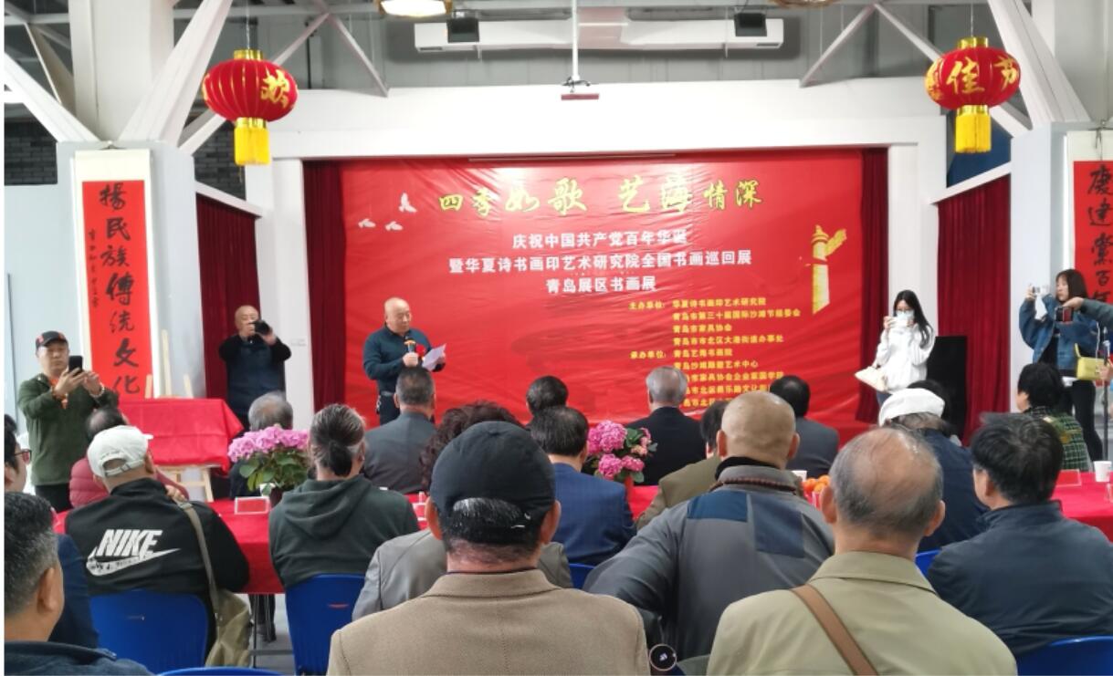 诗书画印传友情,墨花争艳开岛城。
